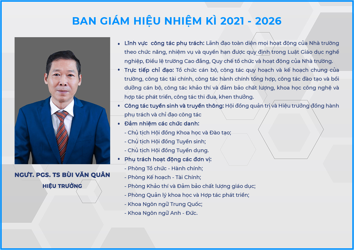 Đội ngũ Lãnh đạo, Cán bộ, Giảng viên, Nhân viên Trường Cao đẳng Ngoại ngữ và Công nghệ Hà Nội Trường Cao đẳng Ngoại ngữ và Công nghệ Hà Nội (FTC - Hanoi Foreign Languages and Technology College) là cơ sở giáo dục nghề nghiệp trực thuộc Bộ Giáo dục và Đào tạo với nhiệm vụ là cơ sở đào tạo nhóm ngành Ngoại ngữ, Công nghệ - Kỹ thuật, Du lịch - Dịch vụ và Kinh tế - Thương...