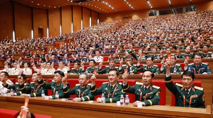 Đảng viên biểu quyết tại đại hội. Ảnh: TTXVN
