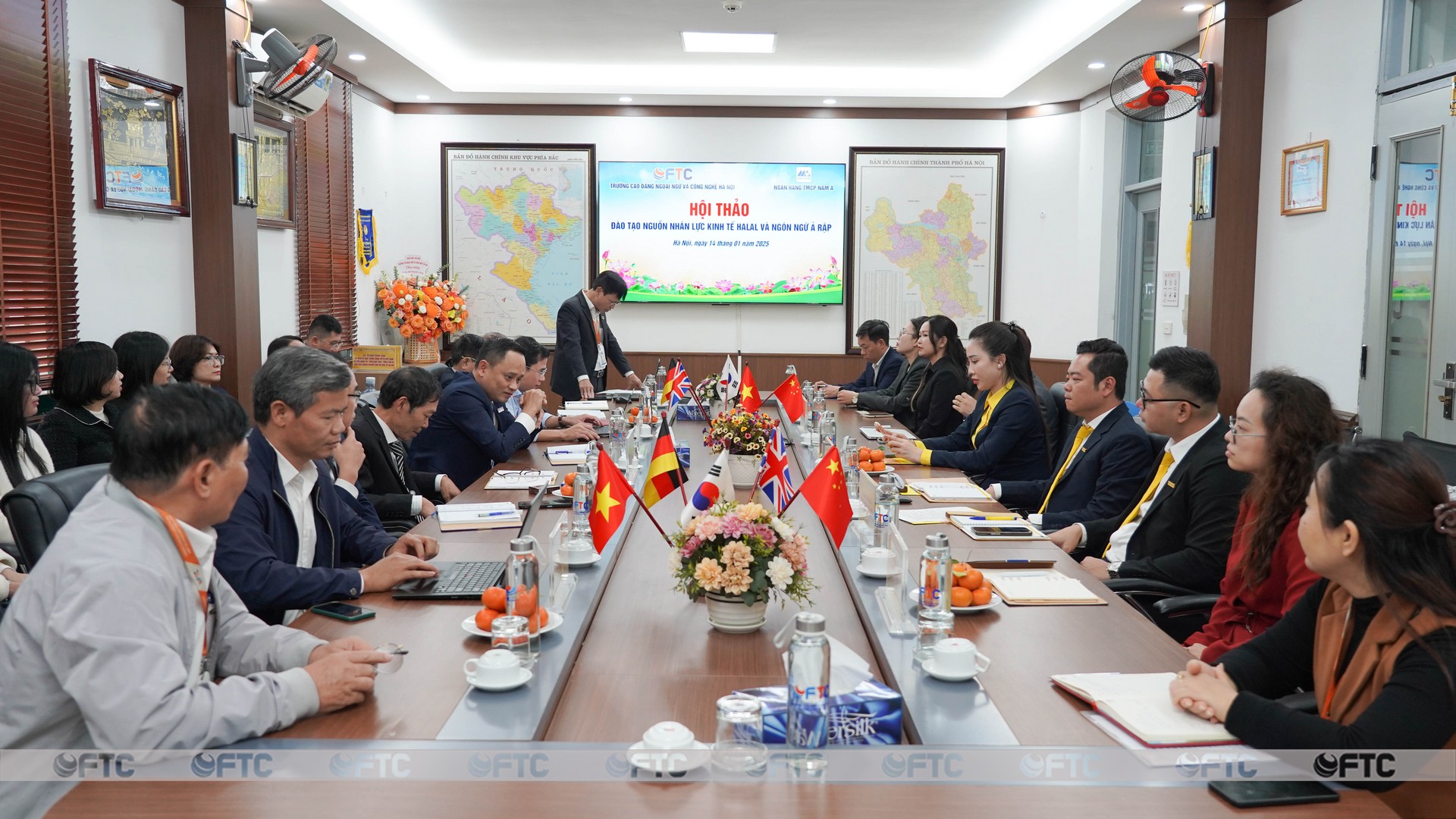 Trong bối cảnh nền kinh tế toàn cầu đang chuyển mình mạnh mẽ, thị trường Halal với quy mô hàng tỷ người dùng không chỉ là cơ hội mà còn là mục tiêu chiến lược của Việt Nam. Nhận thức rõ sứ mệnh đào tạo nguồn nhân lực đi trước đón đầu, ngày 14/01/2026, Trường Cao đẳng Ngoại ngữ và Công nghệ Hà Nội (FTC) đã phối hợp cùng Ngân hàng TMCP Nam Á (Nam A Bank) tổ chức thành công hội thảo: "Đào tạo nguồn nhân lực kinh tế Halal và Ngôn ngữ Ả Rập". Đây là nơi hội tụ tri thức và tầm nhìn của các chuyên gia đầu ngành, hướng tới mục tiêu giải bài toán nhân lực chất lượng cao cho một thị trường trị giá hàng nghìn tỷ USD.