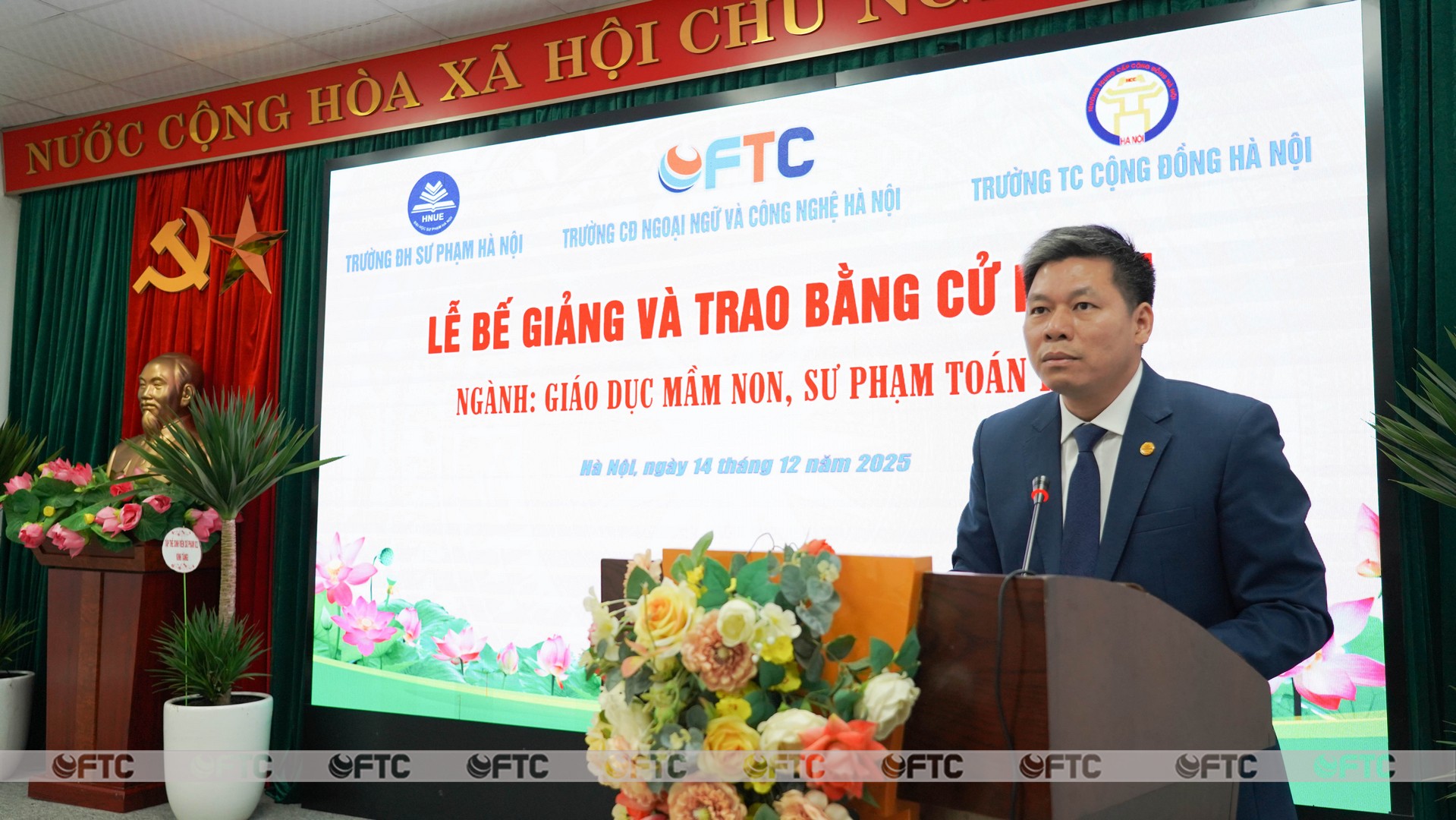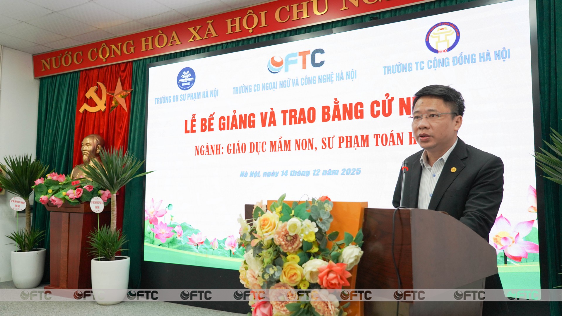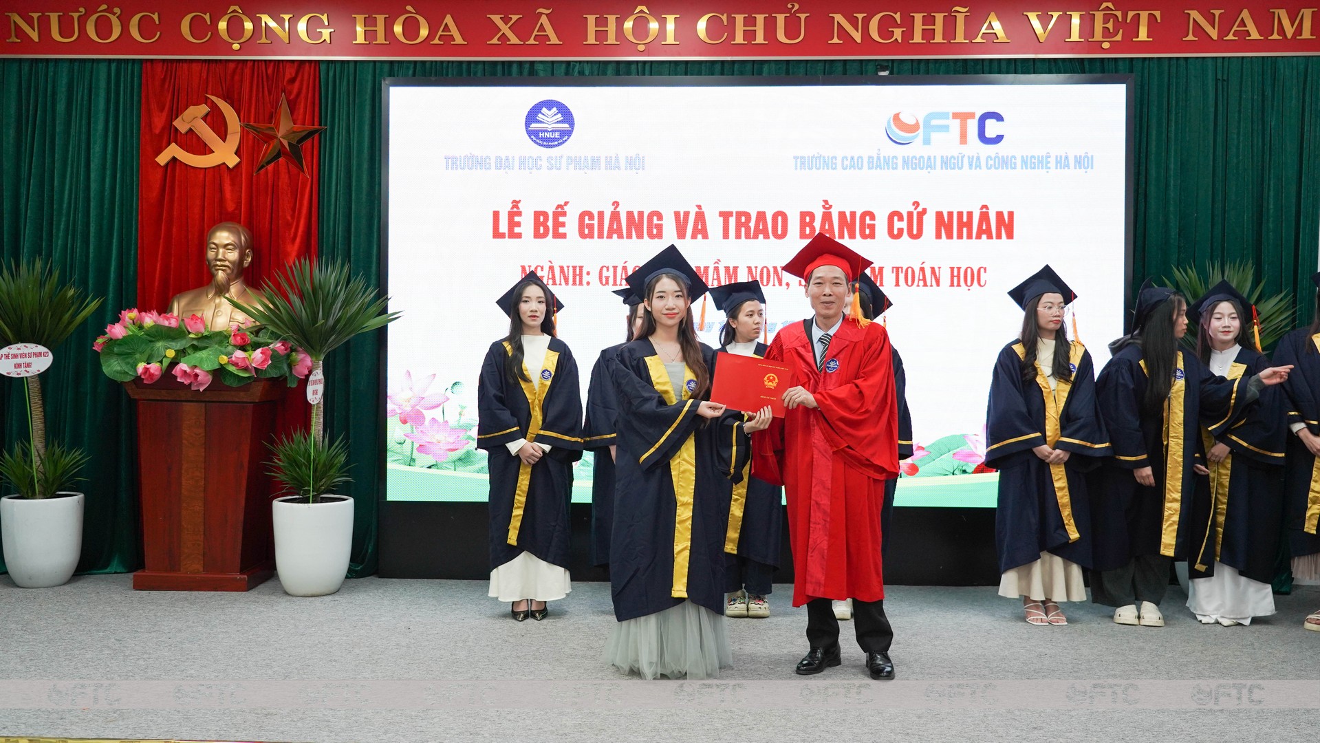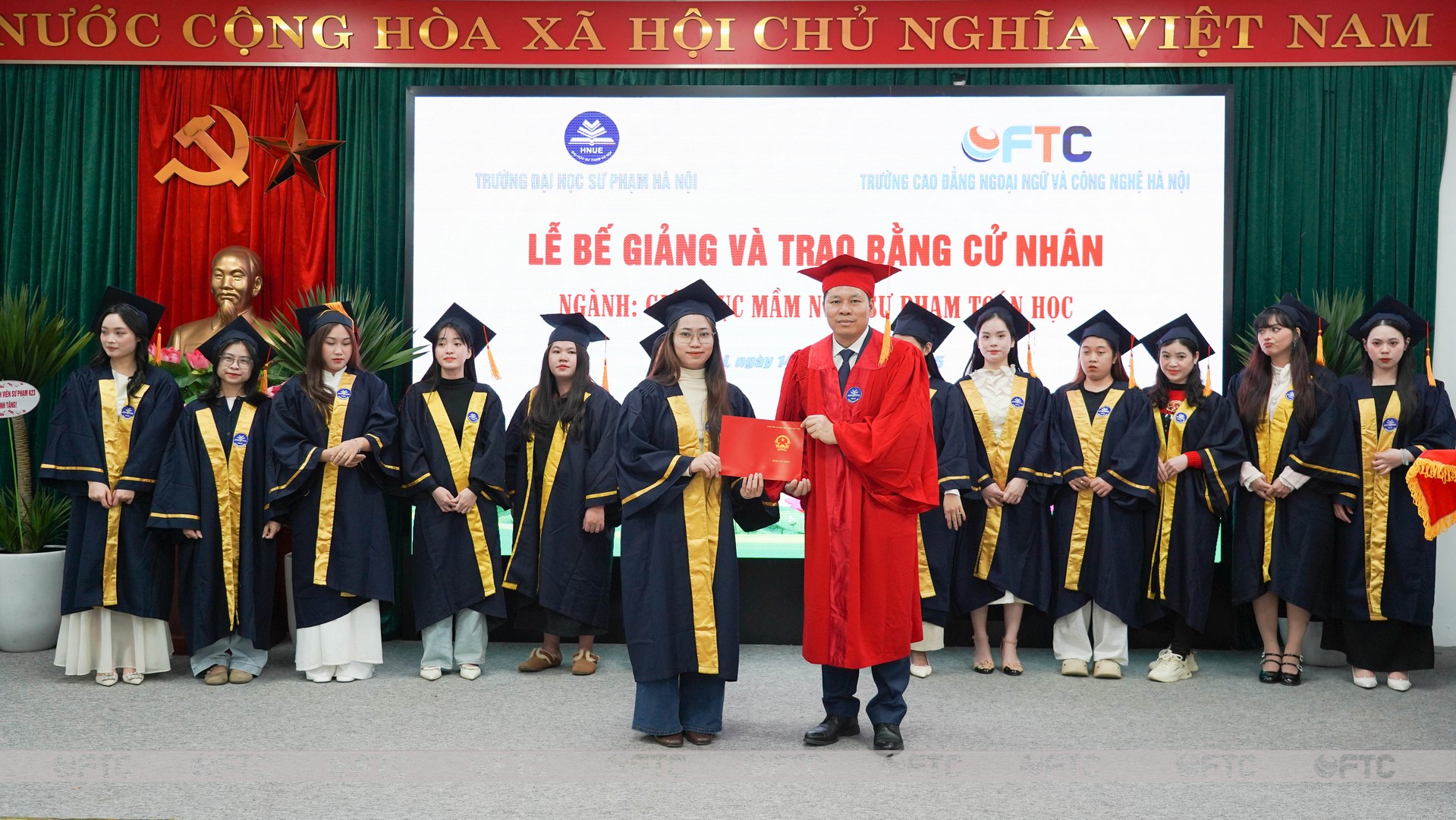 Ngày 14/12/2025, Trường Cao đẳng Ngoại ngữ và Công nghệ Hà Nội (FTC) phối hợp cùng Trường Đại học Sư phạm Hà Nội (HNUE) long trọng tổ chức Lễ Bế giảng và Trao bằng Tốt nghiệp Đại học. Đây là sự kiện trọng đại dành cho các tân cử nhân thuộc hai ngành: Sư phạm Mầm non và Sư phạm Toán.