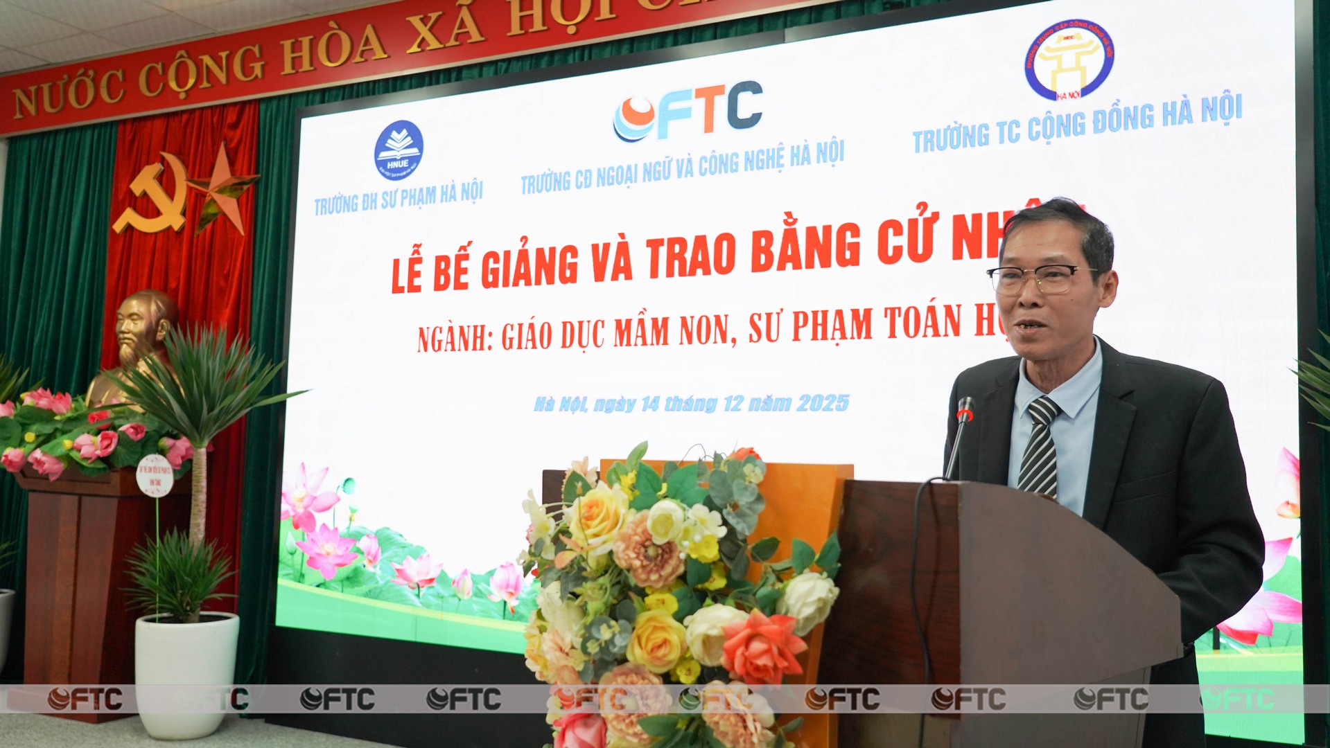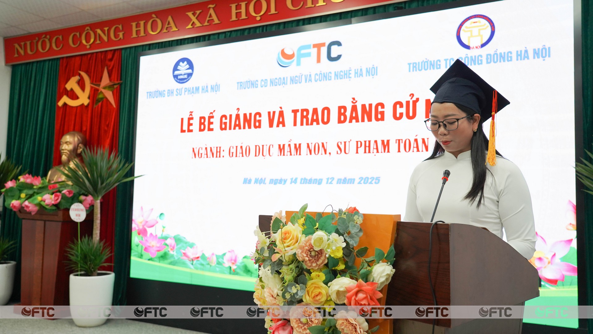 “Trường Đại học Sư phạm Hà Nội đánh giá cao nỗ lực học tập của các tân cử nhân và sự phối hợp chuyên nghiệp từ Trường Cao đẳng FTC. Việc các bạn được trao bằng cử nhân của HNUE hôm nay là sự ghi nhận xứng đáng cho quá trình khổ luyện, đồng thời là lời khẳng định về chất lượng đào tạo chuẩn mực của chương trình liên thông này.”