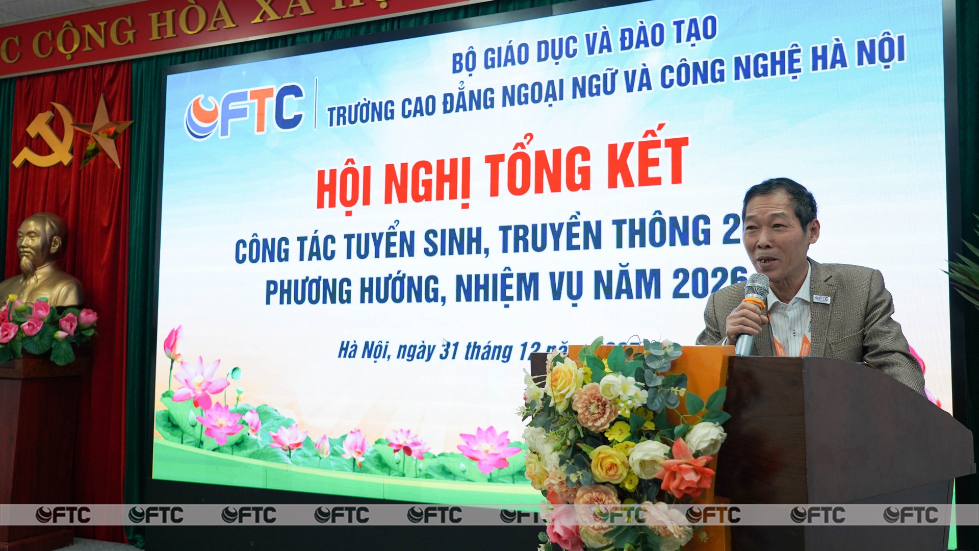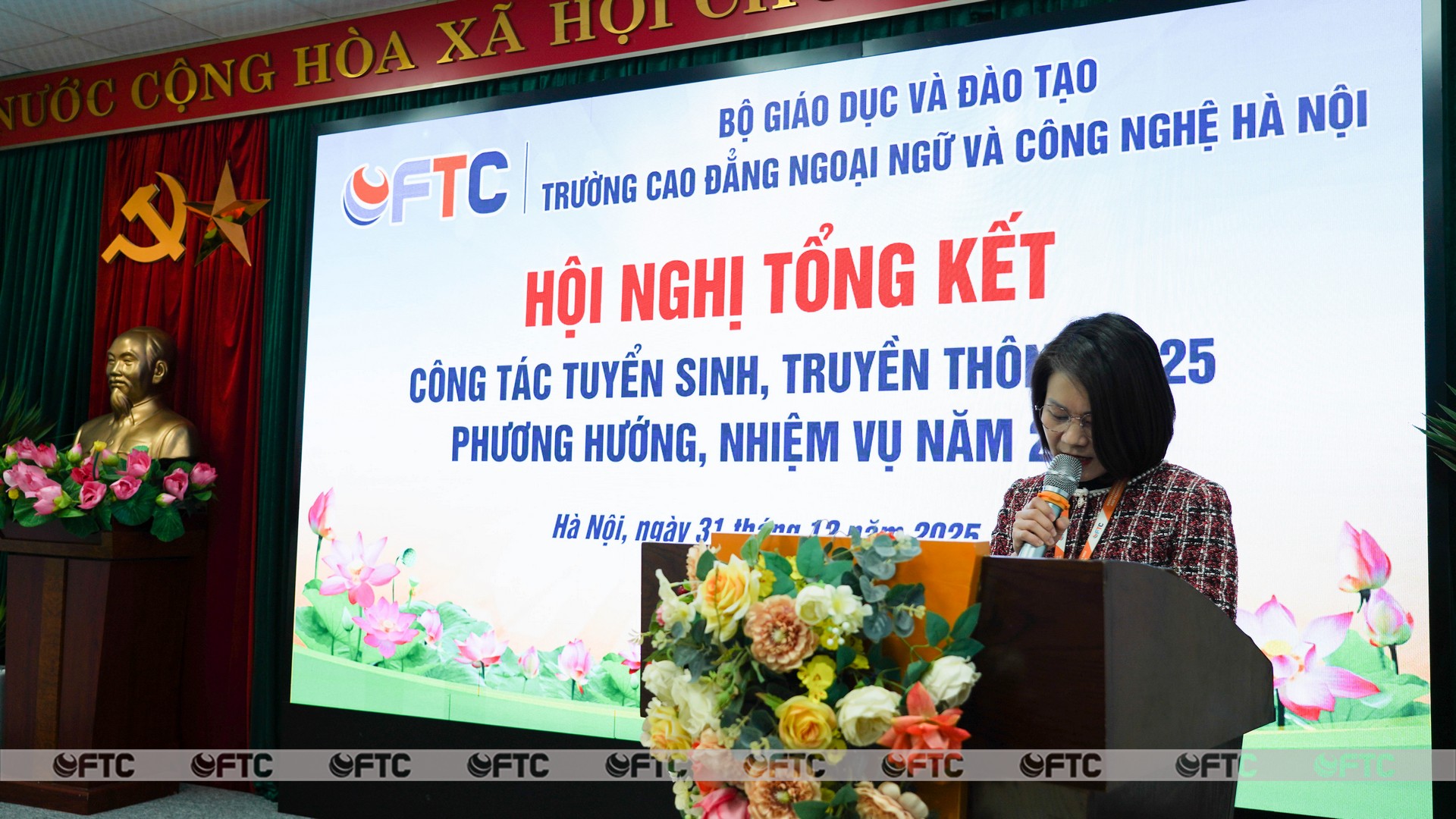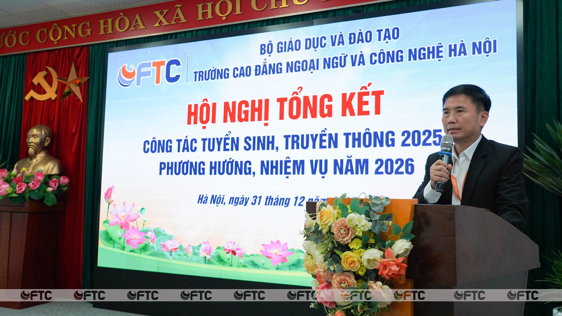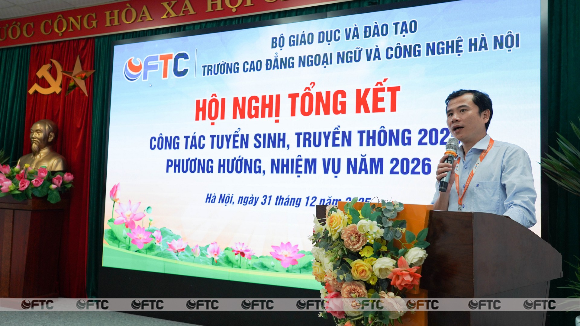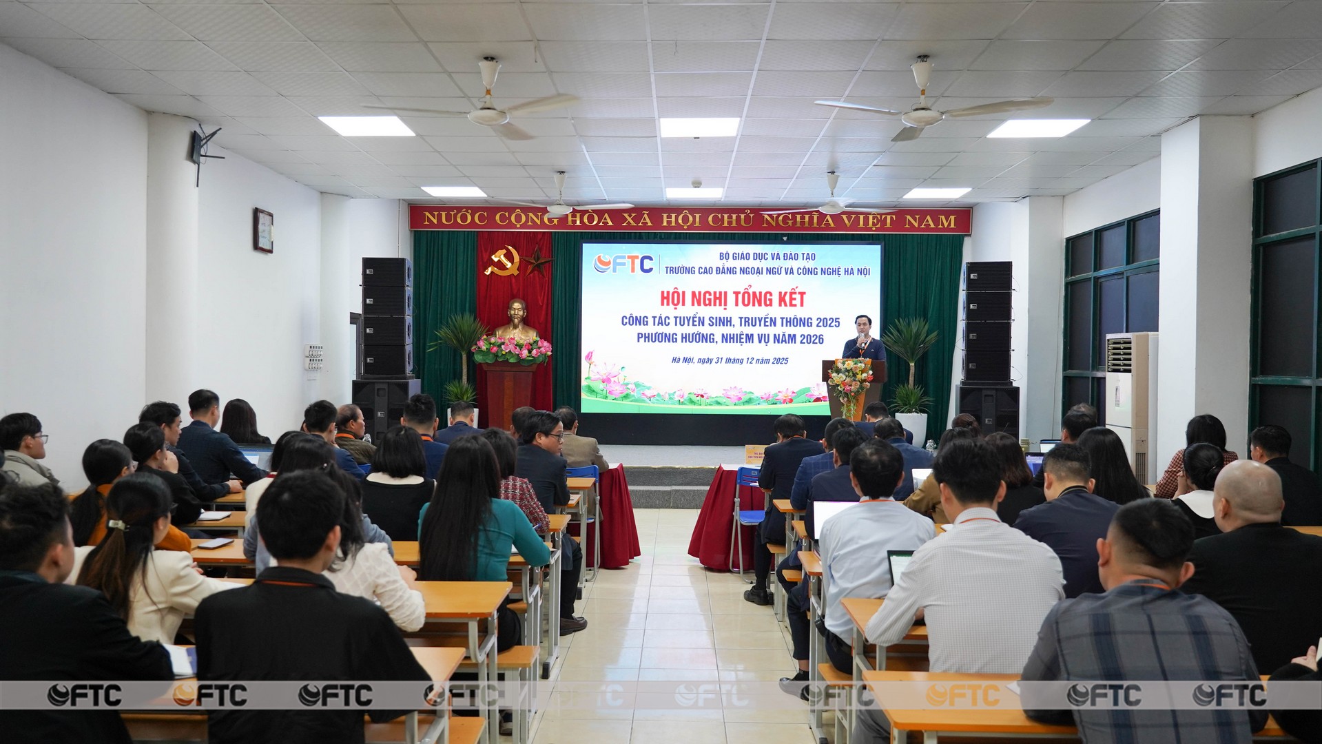 Thực hiện theo kế hoạch năm học, ngày 31/12/2025, Trường Cao đẳng Ngoại ngữ và Công nghệ Hà Nội (FTC) đã long trọng tổ chức "Hội nghị tổng kết công tác tuyển sinh, truyền thông năm 2025 và triển khai phương hướng, nhiệm vụ năm 2026". Hội nghị nhằm đánh giá những kết quả đã đạt được, đồng thời đề ra chiến lược bứt phá cho năm học tới.