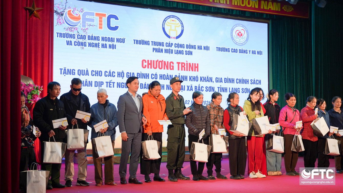 Đại diện Lãnh đạo Nhà trường trao tặng phần quà ý nghĩa cho các hộ gia đình có hoàn cảnh khó khăn nhân dịp Tết Nguyên Đán 2026 tại xã Bắc Sơn, tỉnh Lạng Sơn