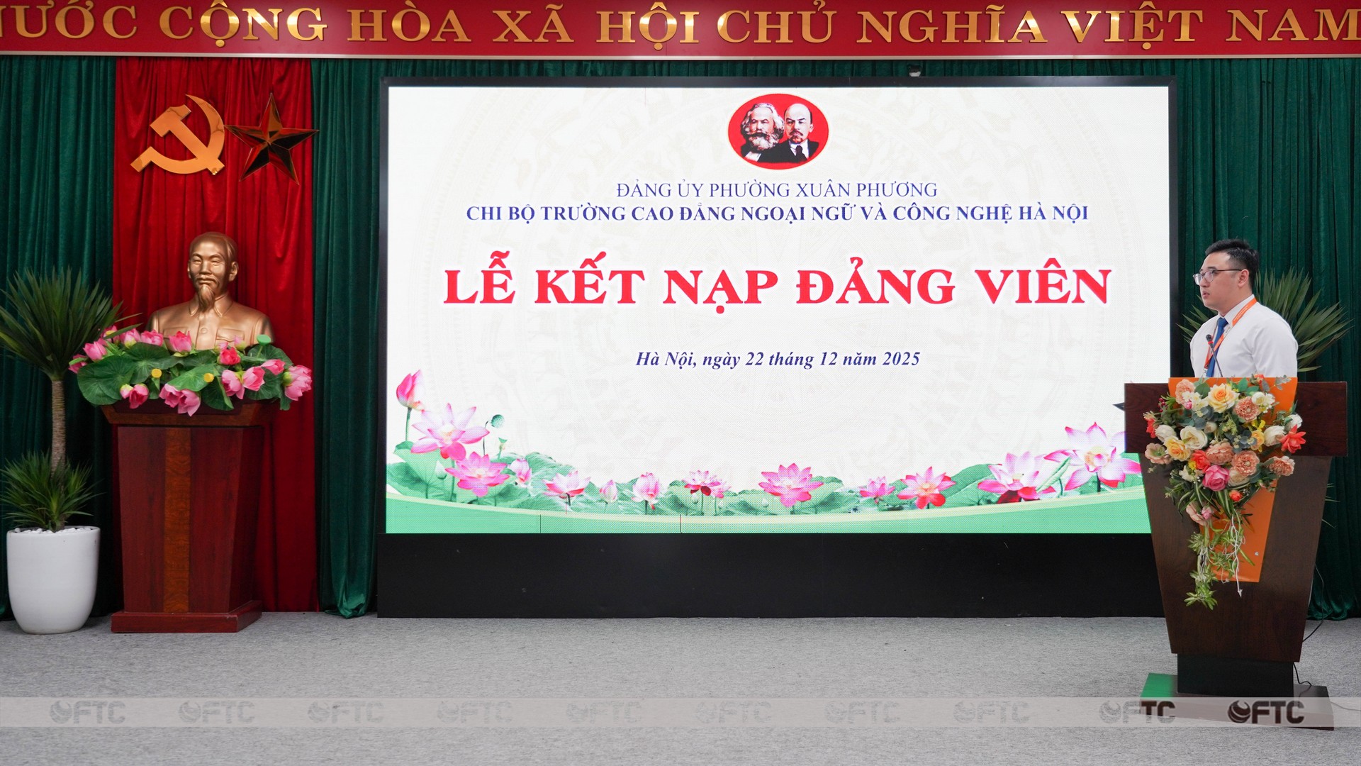 Buổi lễ kết nạp Đảng viên mới nhân dịp kỷ niệm 22/12/2025 đã diễn ra thành công tốt đẹp, để lại những dư âm sâu sắc trong lòng mỗi người tham dự. Sự kiện không chỉ đơn thuần là việc phát triển về mặt số lượng, mà còn là bước đi quan trọng trong việc củng cố chất lượng đội ngũ, tiếp thêm luồng sinh khí trẻ, đầy nhiệt huyết cho Đảng bộ. Những gương mặt mới, những lời thề danh dự dưới cờ Đảng ngày hôm nay chính là lời cam kết mạnh mẽ nhất cho sự phát triển bền vững và tinh thần phụng sự không mệt mỏi của FTC trong tương lai. Chia tay trong niềm phấn khởi, mỗi Đảng viên của Chi bộ FTC ra về với một tâm thế mới, sẵn sàng đương đầu với thử thách, nỗ lực hoàn thành xuất sắc các mục tiêu chính trị và chuyên môn, góp phần xây dựng đơn vị ngày càng vững mạnh.