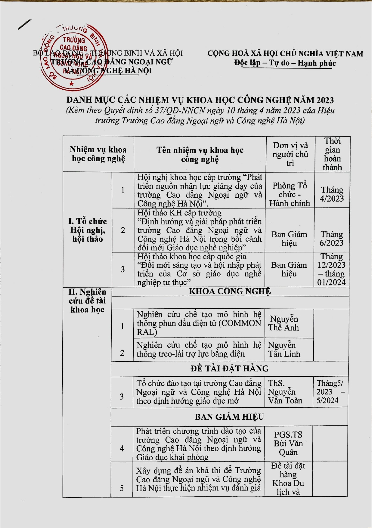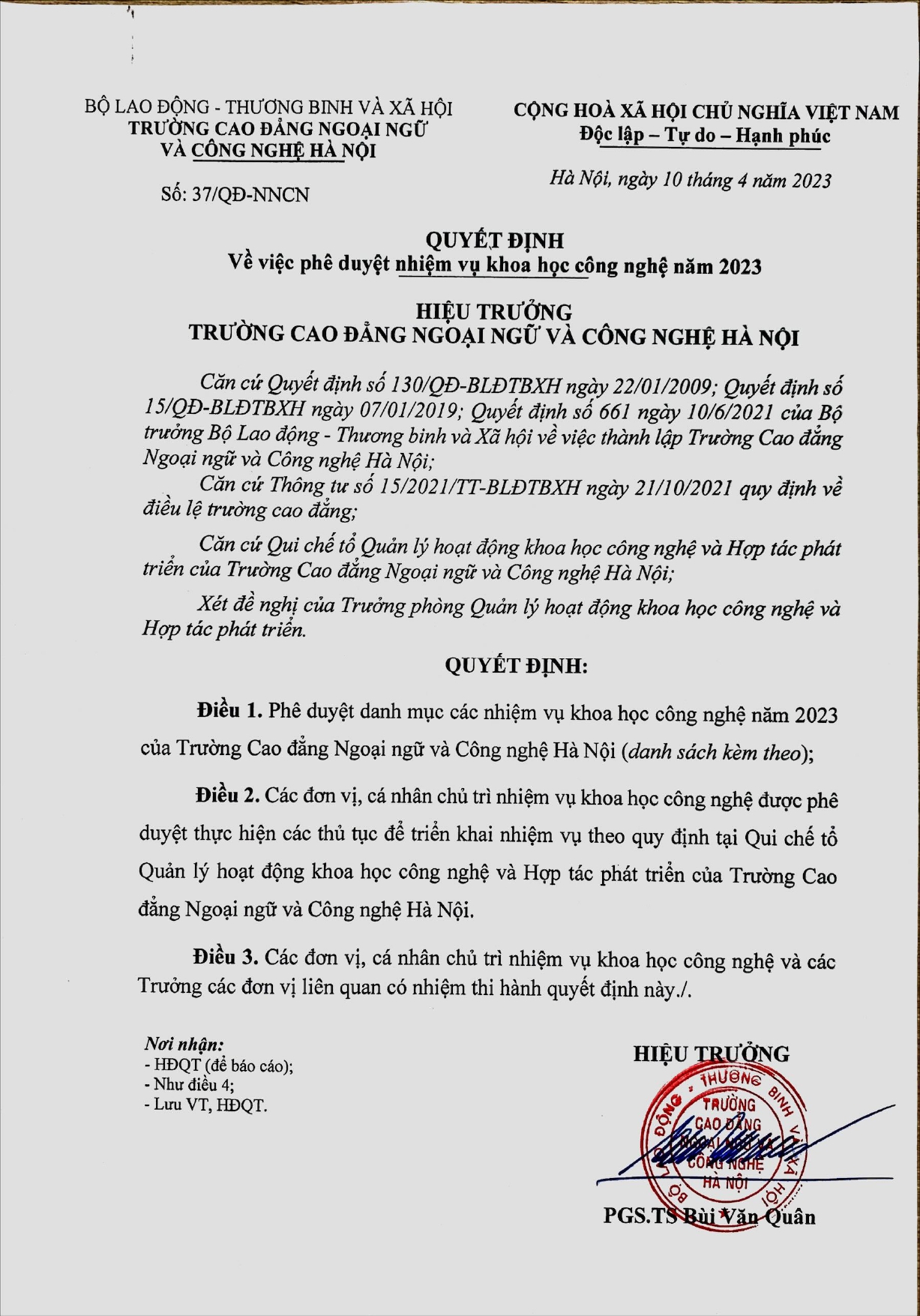 Quyết định về việc phê duyệt nhiệm vụ khoa học công nghệ năm 2023