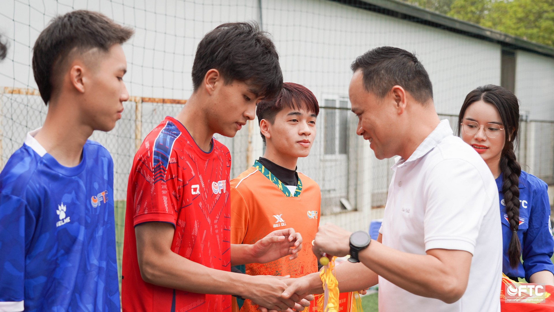 ThS. Nguyễn Cao Đằng - Bí thư Chi bộ, Phó Hiệu trưởng và ThS. Nguyễn Duy Hân - Phó Hiệu trưởng trao cờ lưu niệm cho các đội tham gia