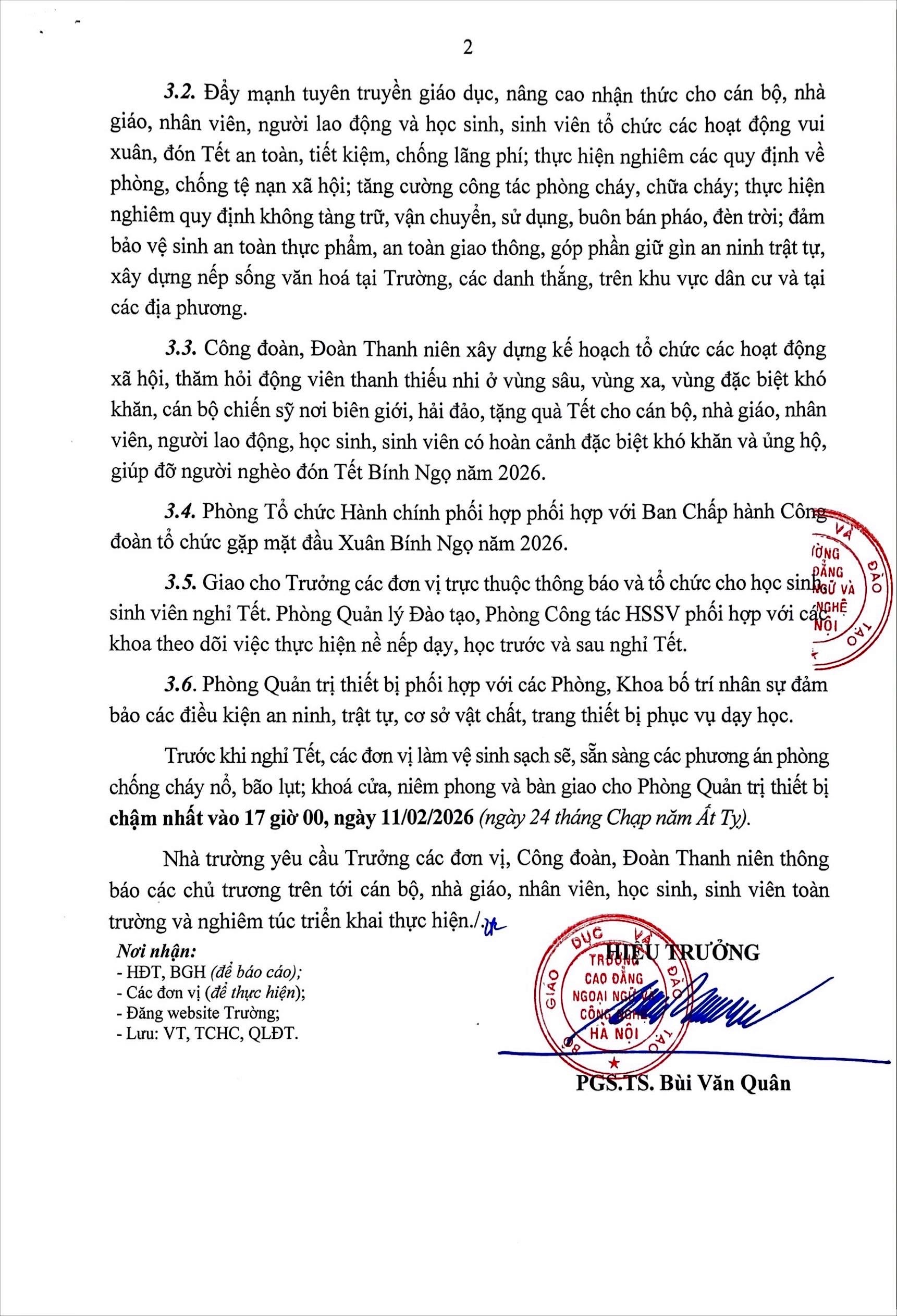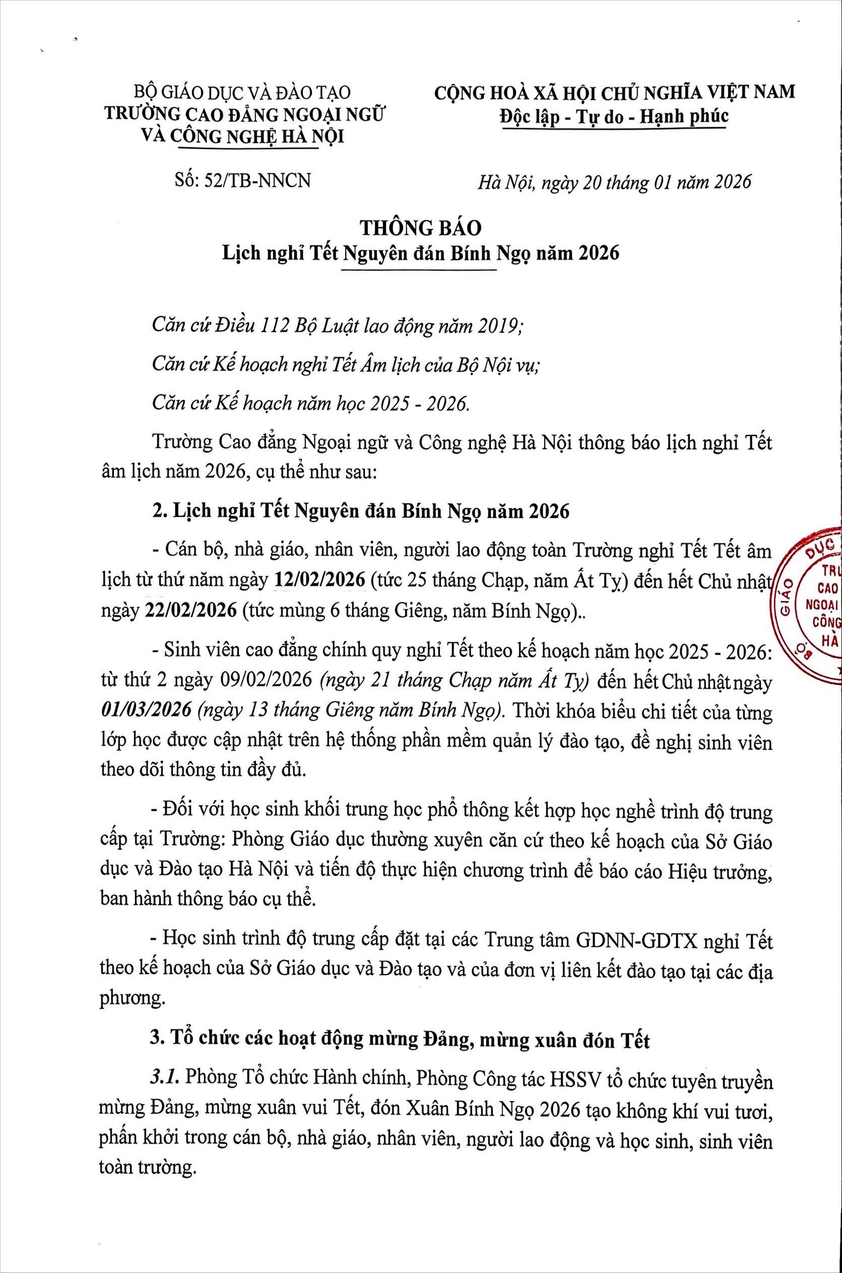 Thông báo Lịch nghỉ Tết Nguyên đán Bính Ngọ năm 2026