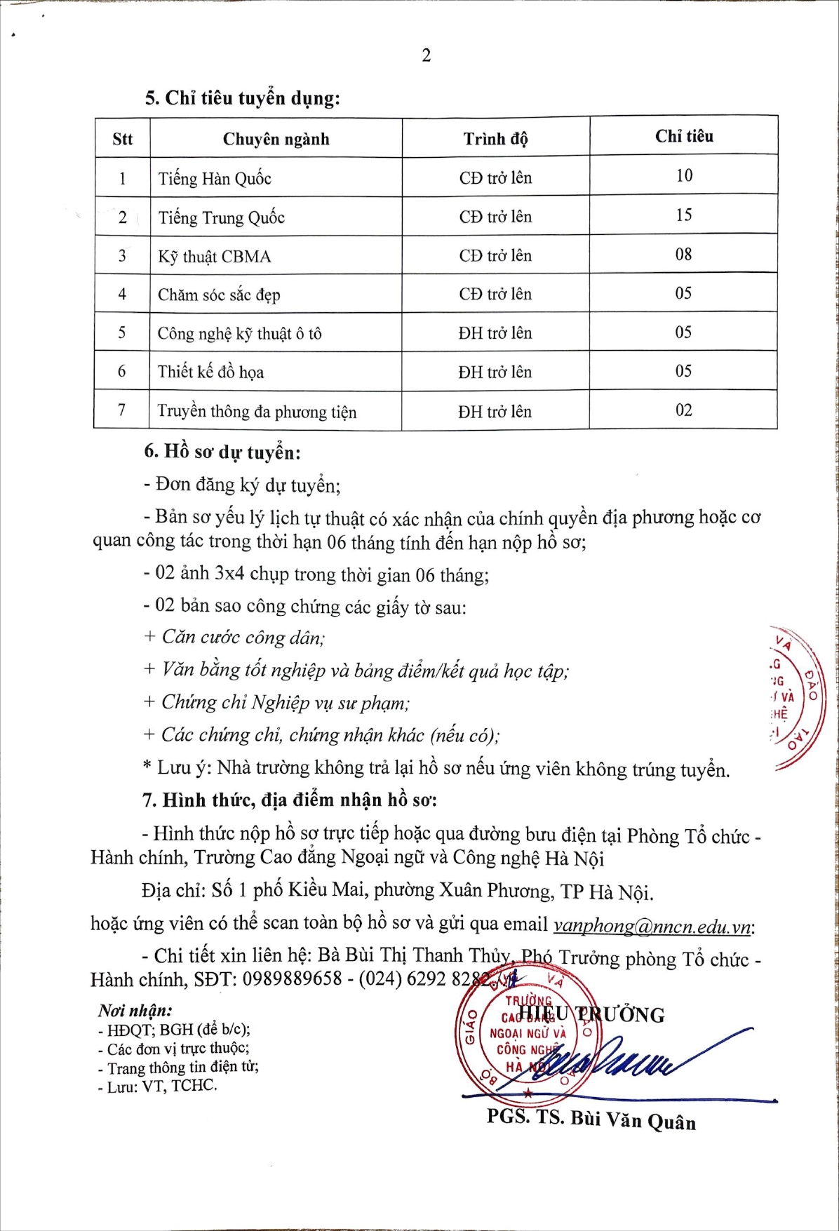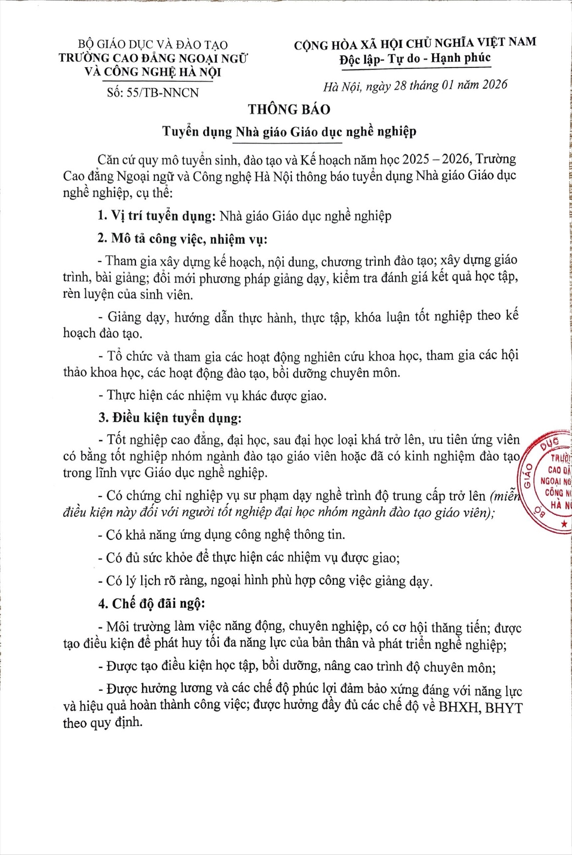 Thông báo Tuyển dụng Nhà giáo Giáo dục nghề nghiệp