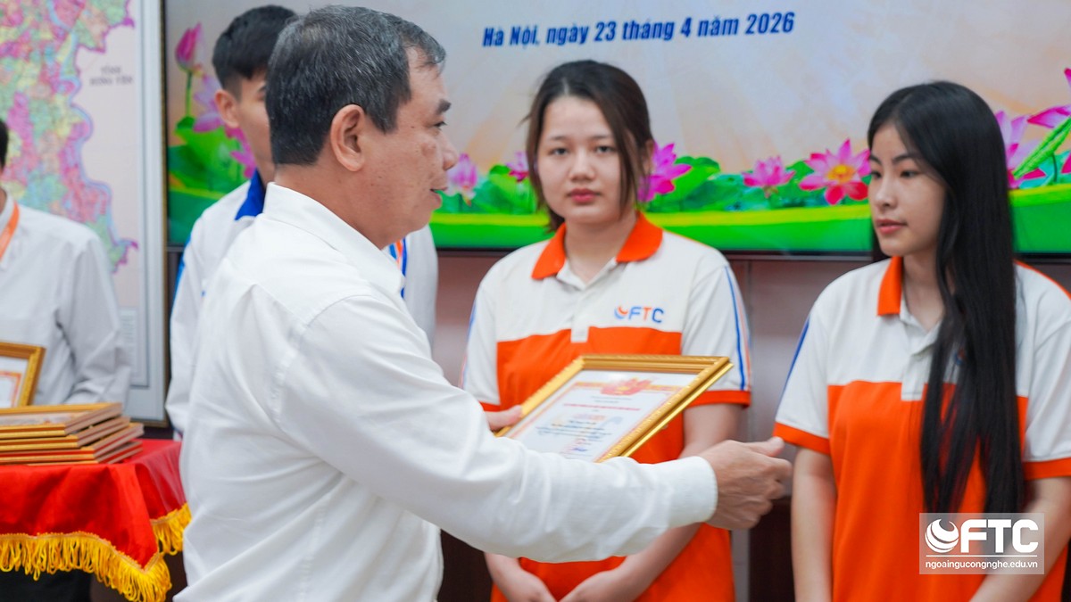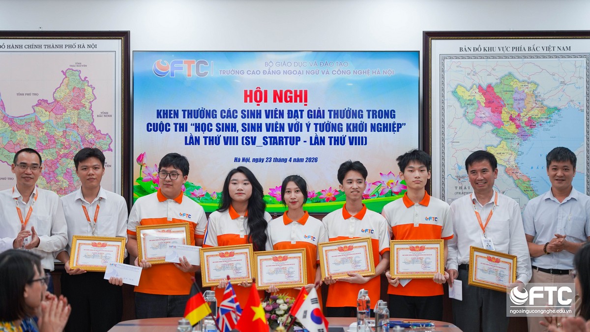Ngày 23/4/2026, Trường Cao đẳng Ngoại ngữ và Công nghệ Hà Nội (FTC) đã vinh dự đón tiếp TS. Hoàng Đức Minh - Vụ trưởng Vụ Học sinh, Sinh viên - Bộ Giáo dục và Đào tạo (BGD&ĐT) đến dự và trao tặng Giấy khen cho các cá nhân là Giảng viên hướng dẫn và Sinh viên nhà trường đã đạt thành tích cao tại Cuộc thi "Học sinh, sinh viên với ý tưởng khởi nghiệp" lần thứ VII năm 2026 do Bộ Giáo dục và Đào tạo tổ chức.