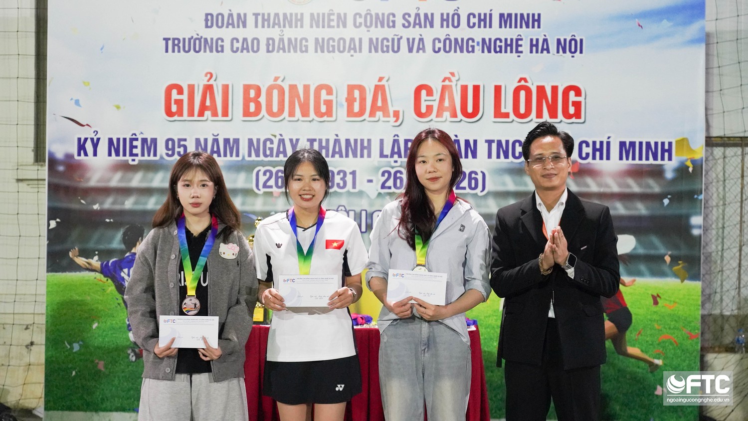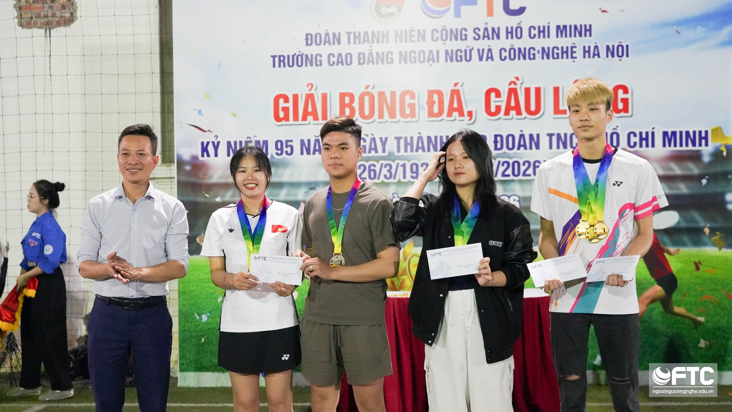 Chiều ngày 19/03/2026, Ban Chấp hành Đoàn trường Cao đẳng Ngoại ngữ và Công nghệ Hà Nội (FTC) đã tổ chức bế mạc và trao giải Giải Bóng đá, Cầu lông sinh viên. Đây là hoạt động trọng điểm nằm trong chuỗi sự kiện chào mừng kỷ niệm 95 năm ngày thành lập Đoàn TNCS Hồ Chí Minh (26/3/1931 - 26/3/2026).